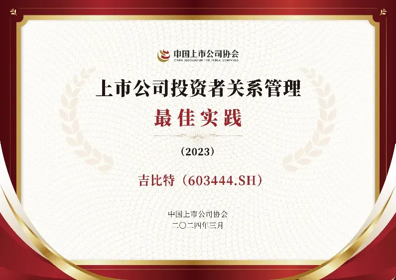 近日,,,,中国上市公司协会举办的2023年“上市公司投资者关系管理最佳实践”活动评选结果揭晓,,,J9.COM荣获“投资者关系管理最佳实践”荣誉,,,,并被纳入最佳实践案例汇编。。
